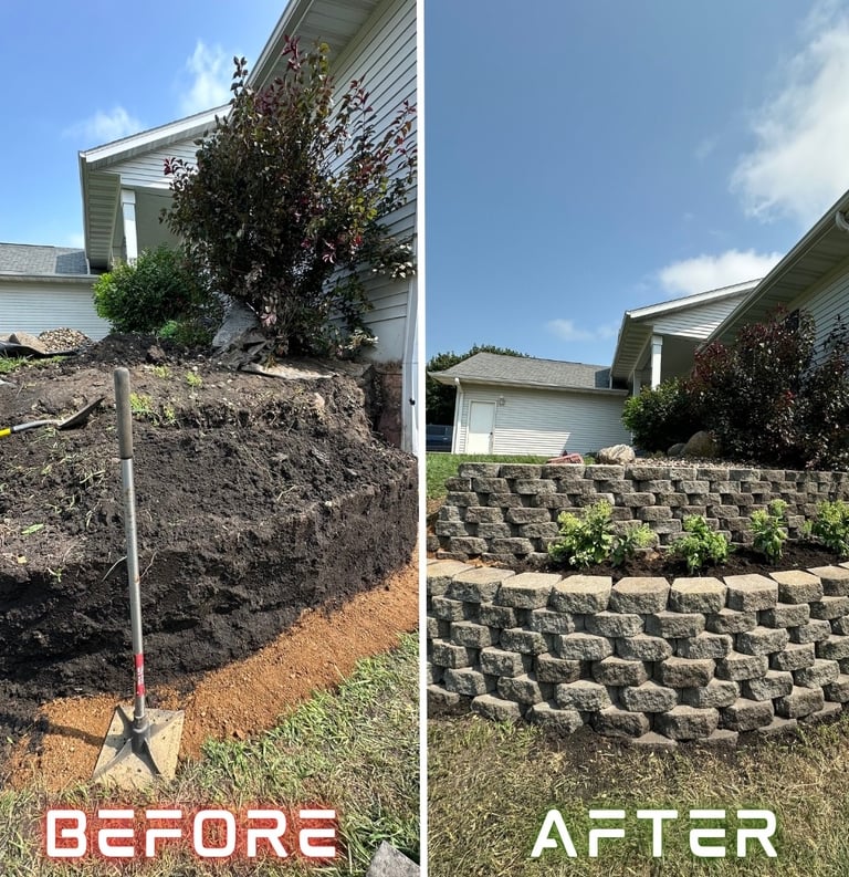 Had retaining wall redone with great success then had shrubs and trees trimmed.